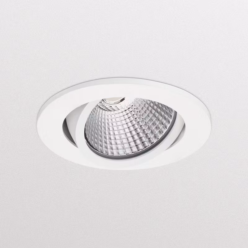 Denna downlight är tiltbar och ger ett varmvitt ljus (2700 Kelvin)